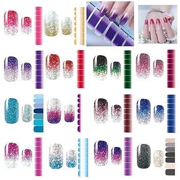 Amazon Com 14 Sheets Nail Stickers Glitter Gradient Color Shine Full Wraps Polish Stickers Decal Strips Self Ashesive Nail Art Sets For Women Girls Kitchen Dining