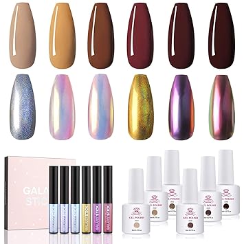 Amazon Com Makartt Gel Nail Polish Kit With Nail Powder Pen Bundle 6 Pastel Classical Colors Nail Gel Polish Classic Brown Colors Galaxy Sticks Holographic Nail Powder Pen Chrome Nail Powder 6