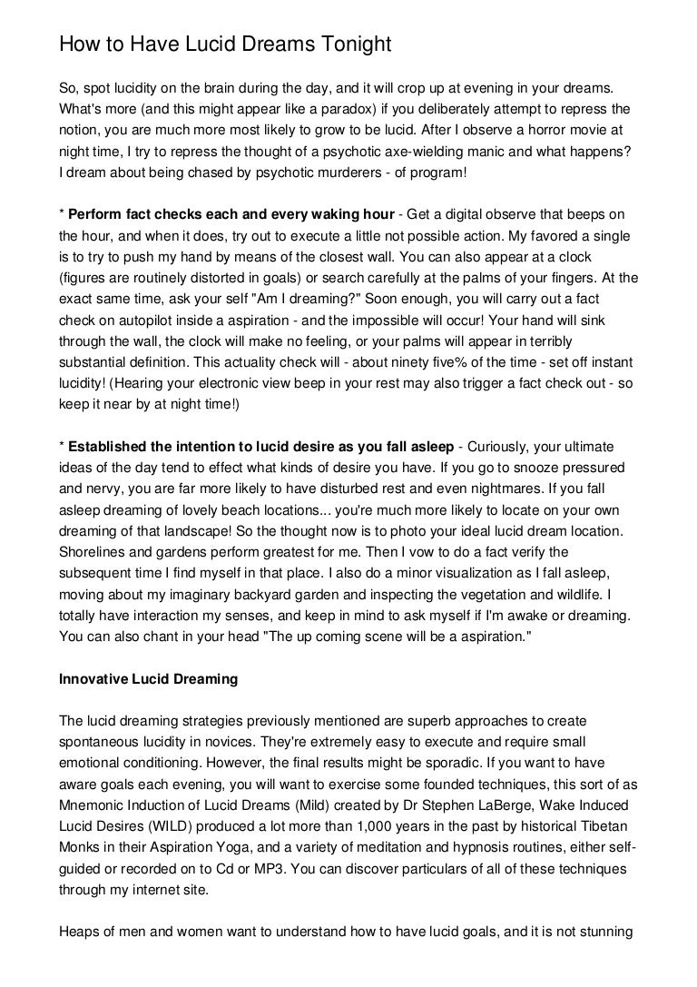 How to have dreams. Hint to Dream Frequently. Give your melatonin levels a lift. Simple solutions to overcome lucid dream problems based on intuitive dream logic.