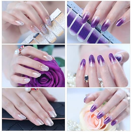 Amazon Com 14 Sheets Nail Stickers Glitter Gradient Color Shine Full Wraps Polish Stickers Decal Strips Self Ashesive Nail Art Sets For Women Girls Kitchen Dining