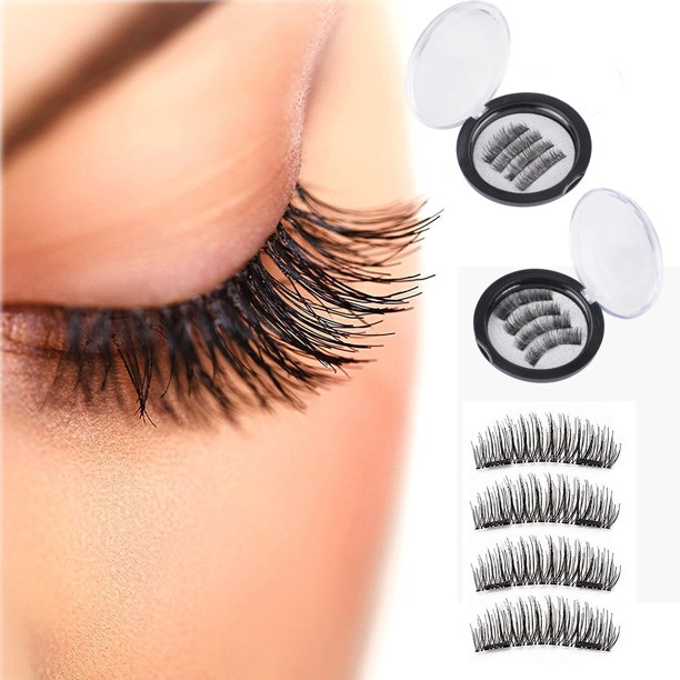 Amazon Com Newest Dual Magnetic False Eyelashes 4 Pieces 3d Reusable Fake Eyelashes Fake Eye Lashes Extensions No False Eyelashes Glue Beauty