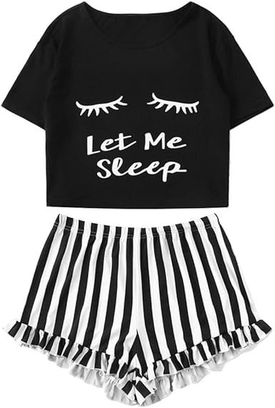 Women S Pyjama Sets Summer Let Me Sleep Letter Print Crop Tops Ruffled Striped Bottoms Cute Graphic Short Sleeve T Shirt Pants Casual Yoga Sportswear Sleepwear Pjs Loungewear Nightwear Amazon Co Uk Clothing