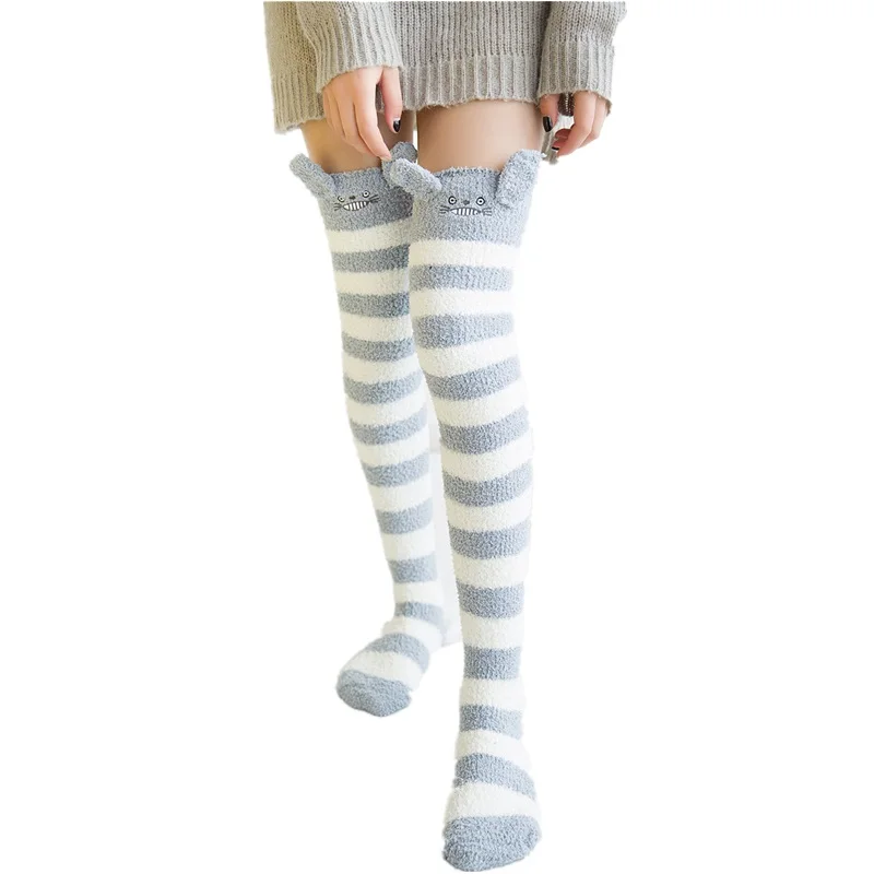 Amazon Com Women Girls Over Knee High Fuzzy Socks Coral Velvet Thigh High Stockings Soft Warm Cozy Long Winter Christmas Leg Warmer Socks Bear Cat Clothing