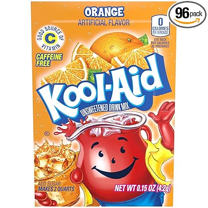 Amazon Com Kool Aid Orange Unsweetened Soft Drink Mix 0 15 Ounce Packets Pack Of 96 Powdered Soft Drink Mixes Grocery Gourmet Food