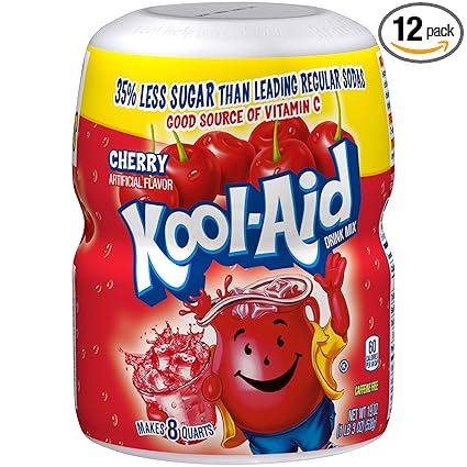 Amazon Com Kool Aid Cherry Flavored Powdered Drink Mix 19 Oz Canisters Pack Of 12 Powdered Soft Drink Mixes Grocery Gourmet Food