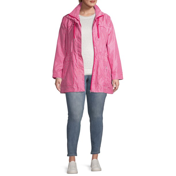 Me Jane Me Jane Women S Plus Size Gingham Rain Jacket With Hood Walmart Com Walmart Com