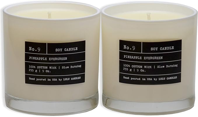 Amazon Com Lulu Candles Pineapple Evergreen Luxury Scented Soy Candles Hand Poured In The Usa Highly Scented Long Lasting 9 Oz White Jar 2 Pack No Box No Lid Home Kitchen