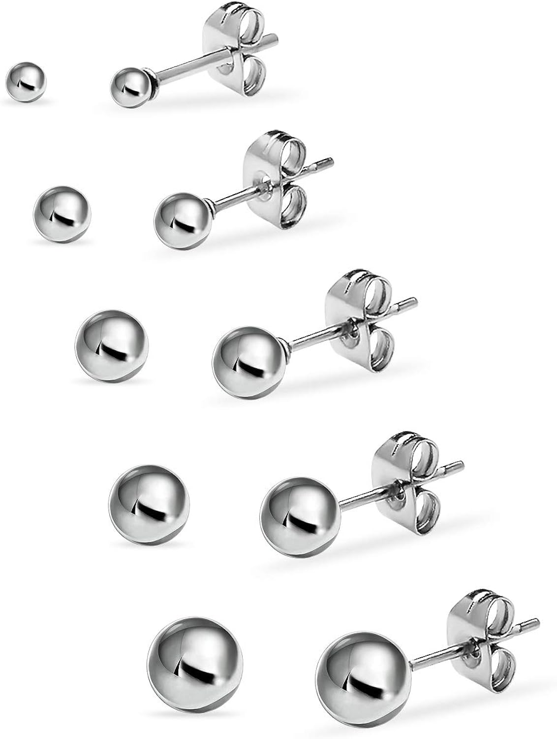 Amazon Com Silverline Jewelry 5 Pair Stainless Steel Round Ball Stud Earrings Set For Women Men Jewelry