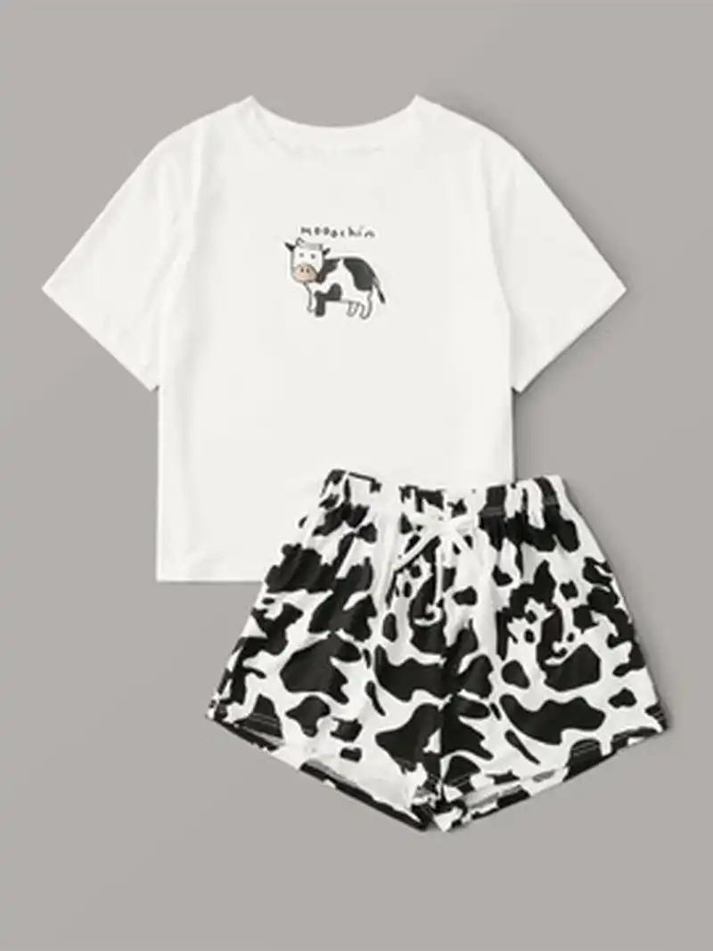 Cow Print Cute Pajamas Cotton 2020 Pijama Verano Mujer Sleepwear Set Women Home Clothes Pajamas With Shorts Pizama Damska Pajama Sets Aliexpress