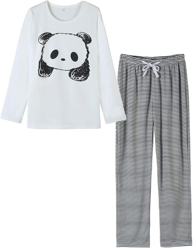 Ventelan Women S Cute Panda Striped Long Sleeve Sleepwear Pjs Pajama Set Nighty At Amazon Women S Clothing Store