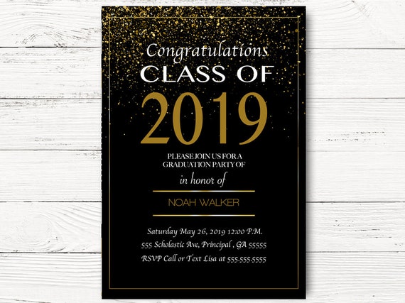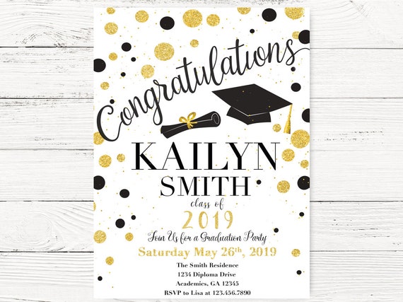 Graduation Party Invitation High School Grad College Graduation Invite Grad Party Printable Gold And Black Craftykizzy