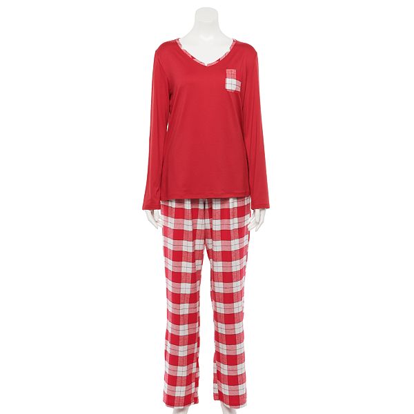 Women S Croft Barrow Long Sleeve Knit Pajama Shirt Flannel Pajama Pants Set
